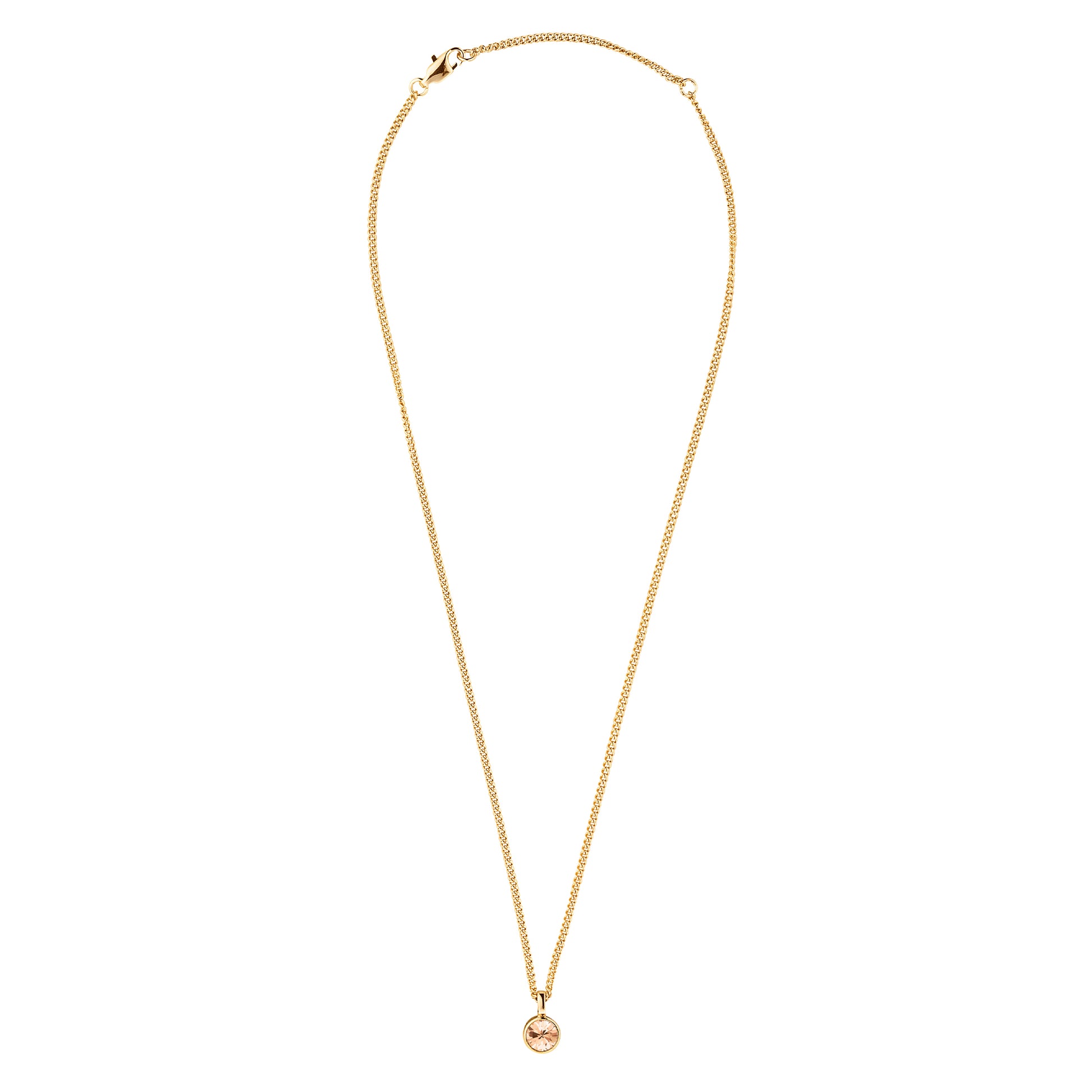 Hovedmateriale: kjede i rustfritt stål, anheng i polert messing med gulltonet finish