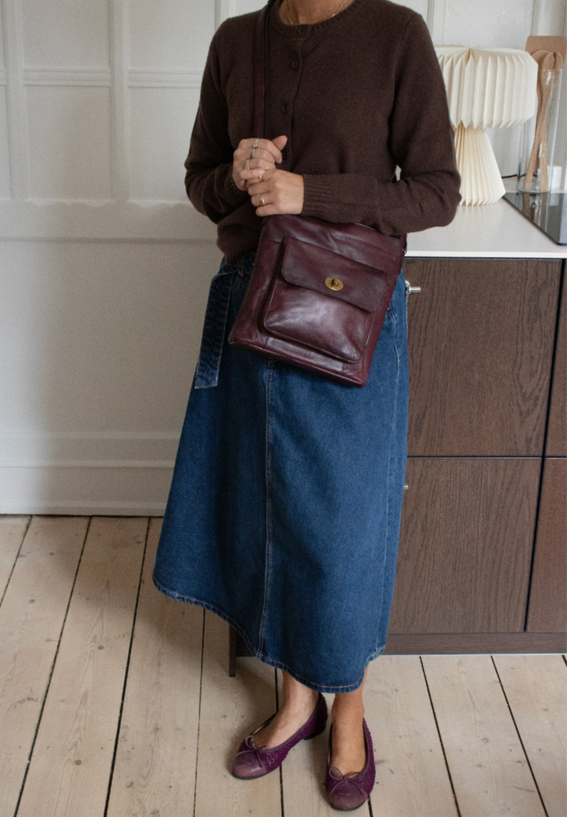 Laget i RE:Designeds Urban kvalitet – et naturlig behandlet ku-skinn som bevarer det unike, originale mønsteret. En lett voks er påført for å fremheve det vintage preget i skinnet, som gjør det glatt og mykt, samtidig som det skaper en naturlig patina over tid.