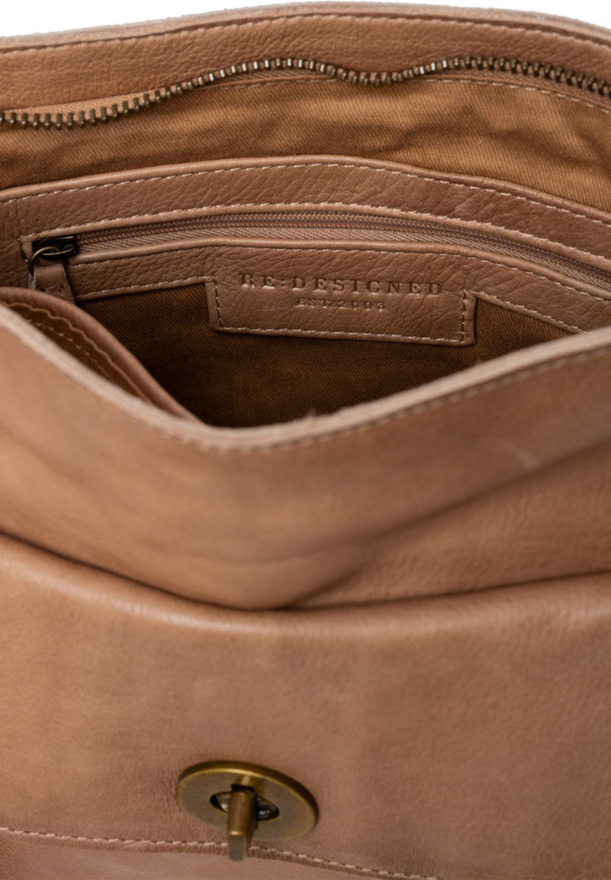 Laget i RE:Designeds Urban kvalitet – et naturlig behandlet ku-skinn som bevarer det unike, originale mønsteret. En lett voks er påført for å fremheve det vintage preget i skinnet, som gjør det glatt og mykt, samtidig som det skaper en naturlig patina over tid.