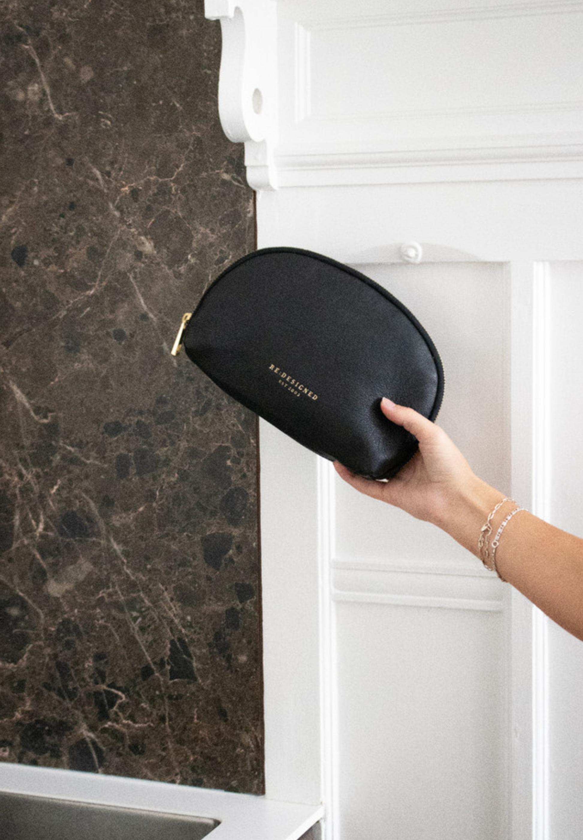 Hoshi kosmetikkveske er et urbant tilbehør designet for å organisere og forbedre dine daglige nødvendigheter. Denne elegant strukturerte vesken er laget av 100 % førsteklasses skinn og har skinnende gulldetaljer i metall som kombinerer holdbarhet med luksus.