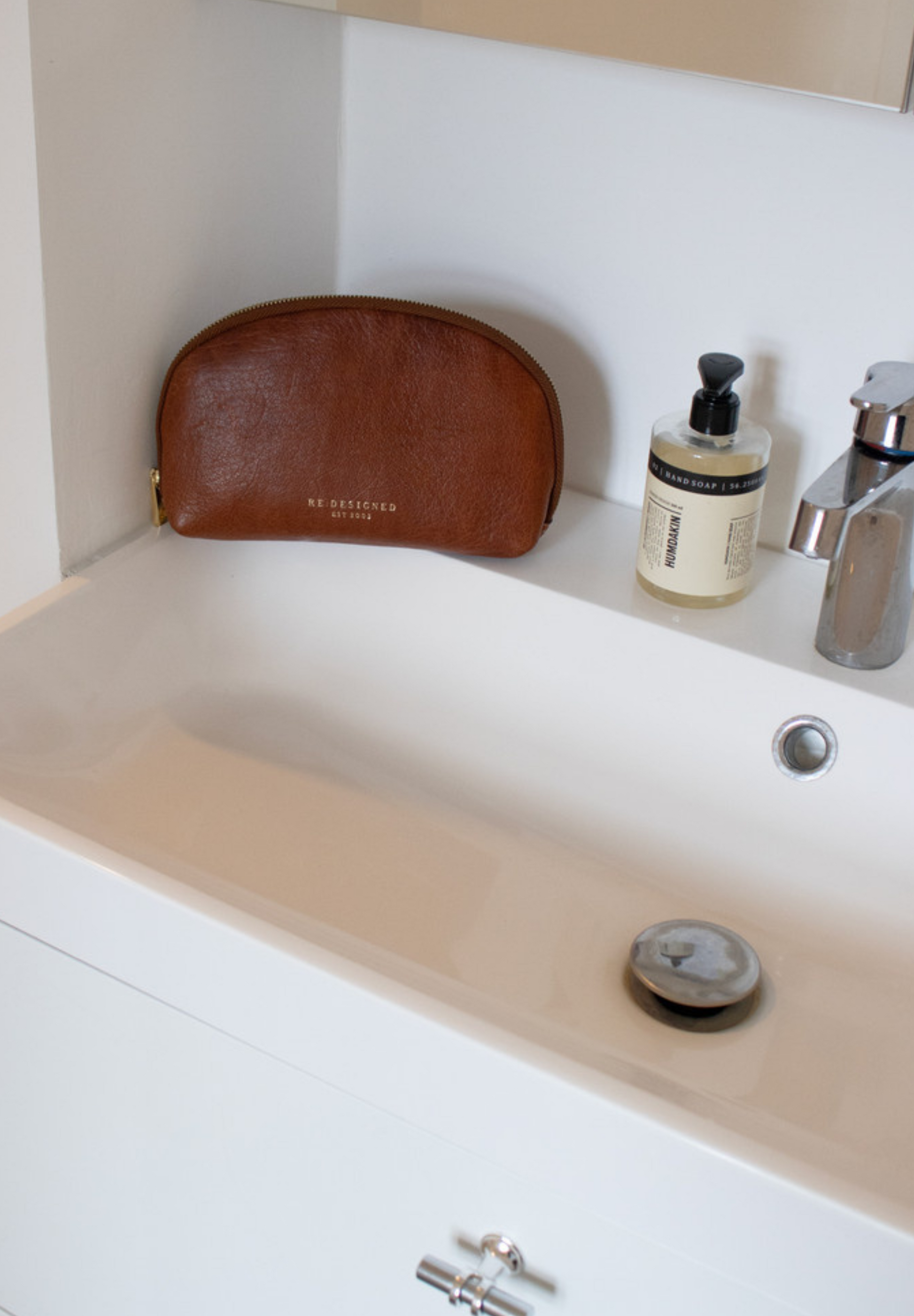 Laget i RE:Designeds Urban kvalitet – et naturlig behandlet ku-skinn som bevarer det unike, originale mønsteret. En lett voks er påført for å fremheve det vintage preget i skinnet, som gjør det glatt og mykt, samtidig som det skaper en naturlig patina over tid.