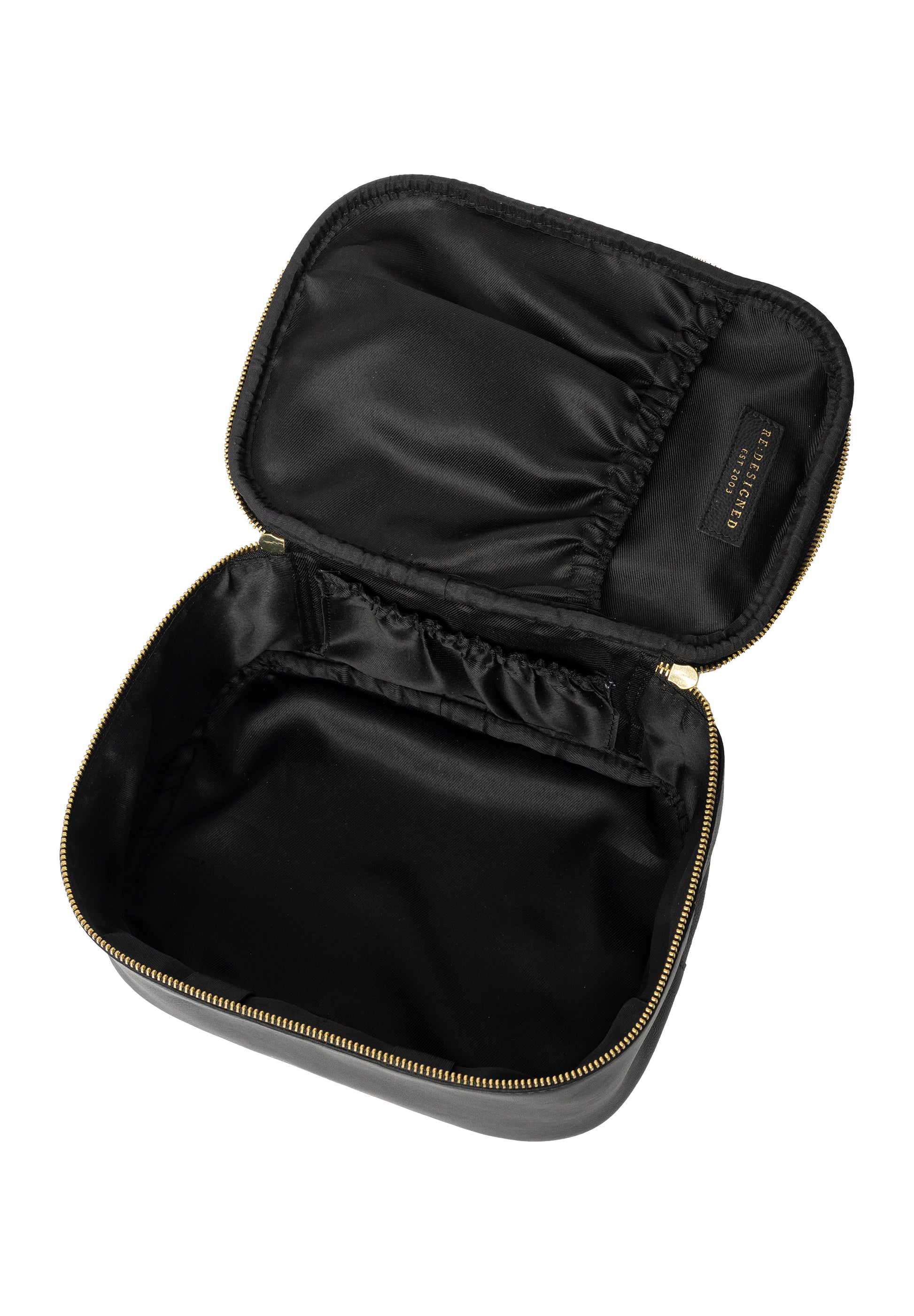 er nøye håndlaget av 100 % skinn med skinnende gulldetaljer i metall. Den romslige utformingen gir deg et stort hovedrom og to ekstra lommer, slik at du enkelt holder orden på toalettartiklene dine – perfekt både hjemme og på reise.