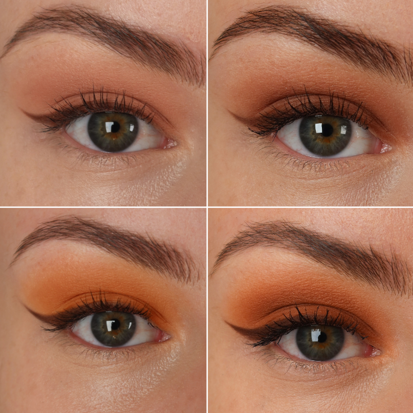 Har du blå øyne? Denne sammensetningen inneholder en kombinasjon av varme jordtoner som fremhever kontrasten fra blå øyne. Make it pop!