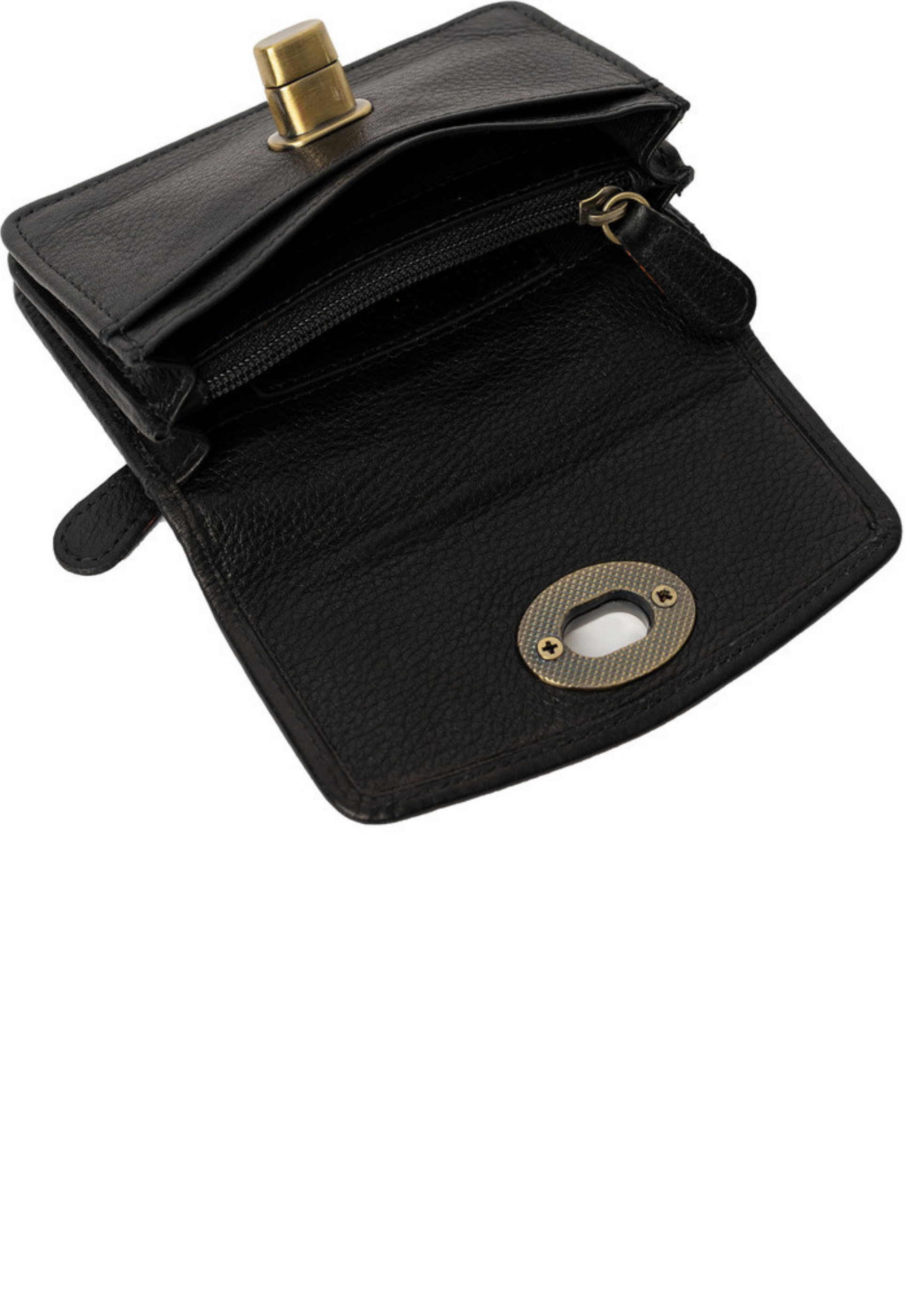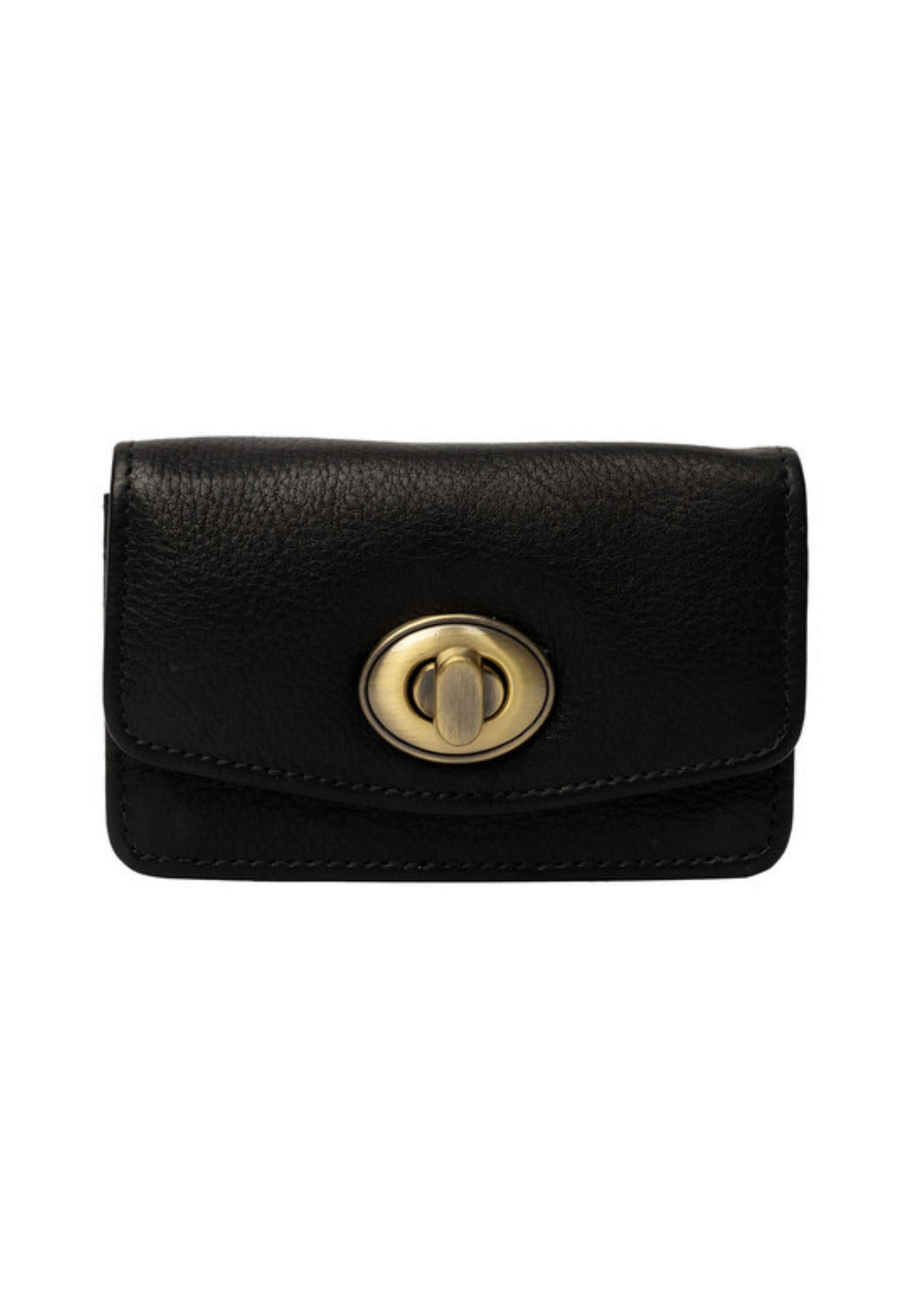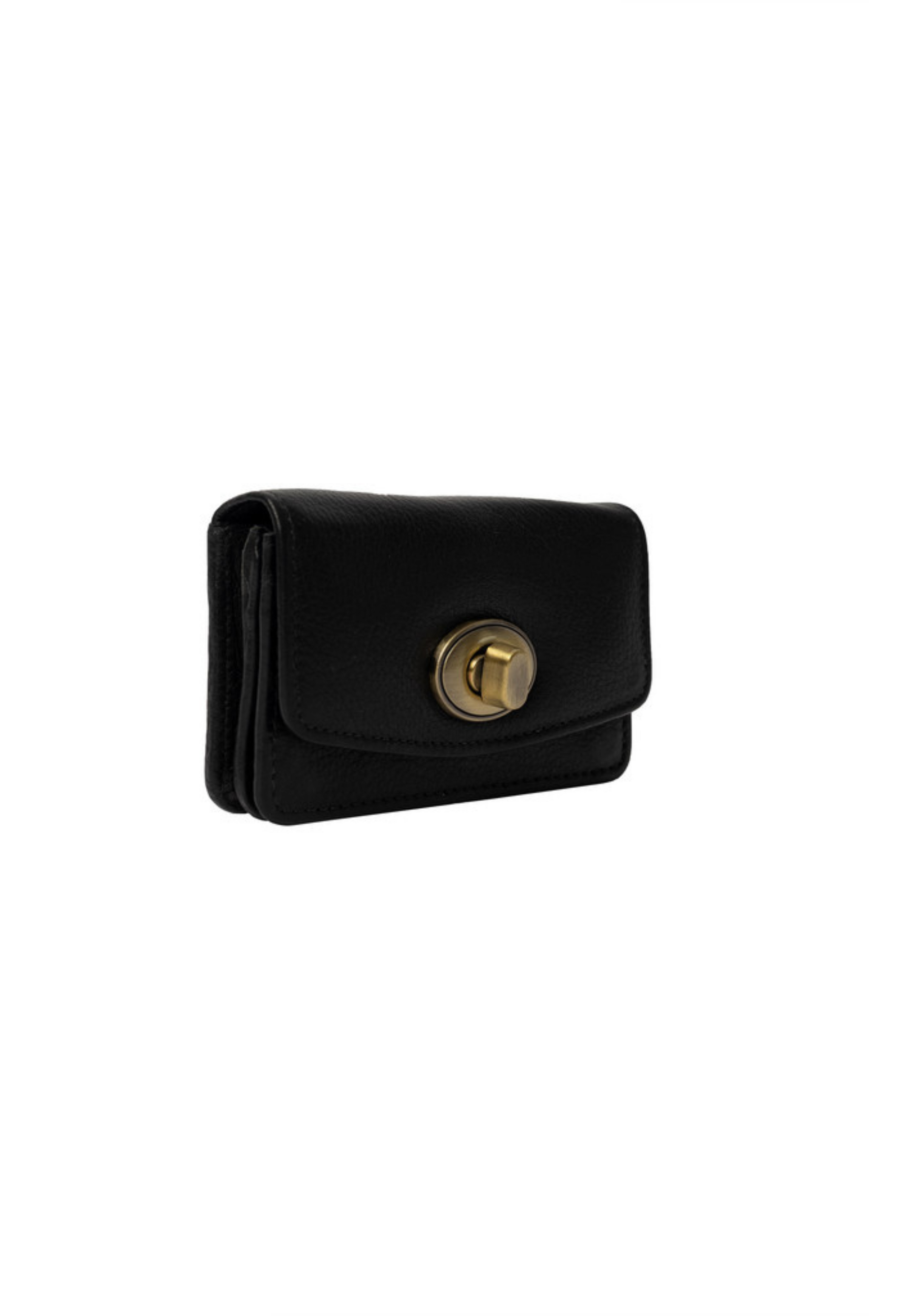 Moa Liten er en enkel, men elegant lommebok. Den slanke og minimalistiske stilen passer til alt, samtidig som den skiller seg ut med den gullfargede låsen. På baksiden finner du en glidelåslomme, og inne er det både et glidelåserom og to åpne seksjoner.