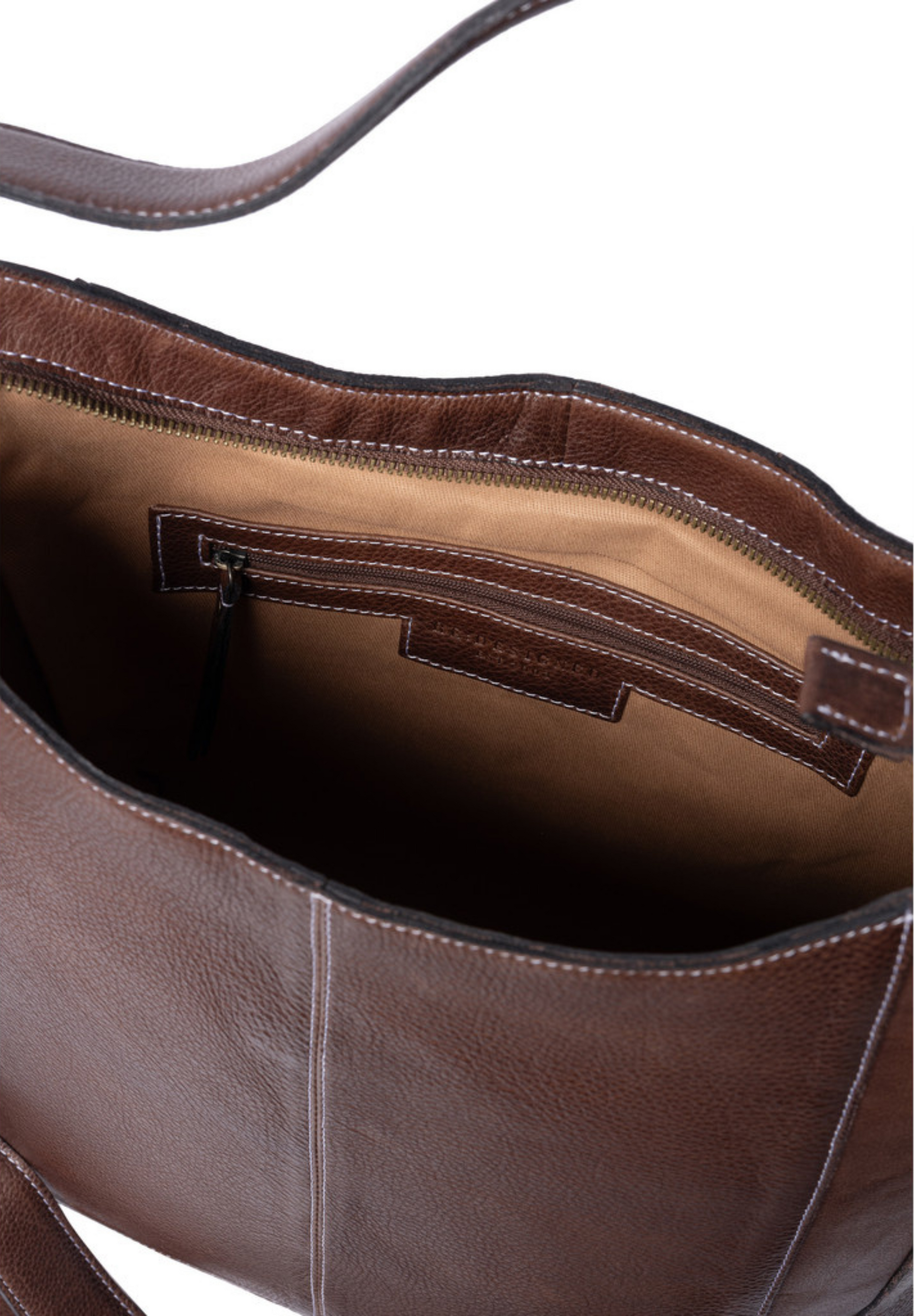 Laget i RE:Designeds Urban kvalitet. Et naturlig behandlet kuskinn som bevarer det unike, originale mønsteret. En lett voks er påført for å fremheve det vintage preget i skinnet, som gjør det glatt og mykt, samtidig som det skaper en naturlig patina over tid.