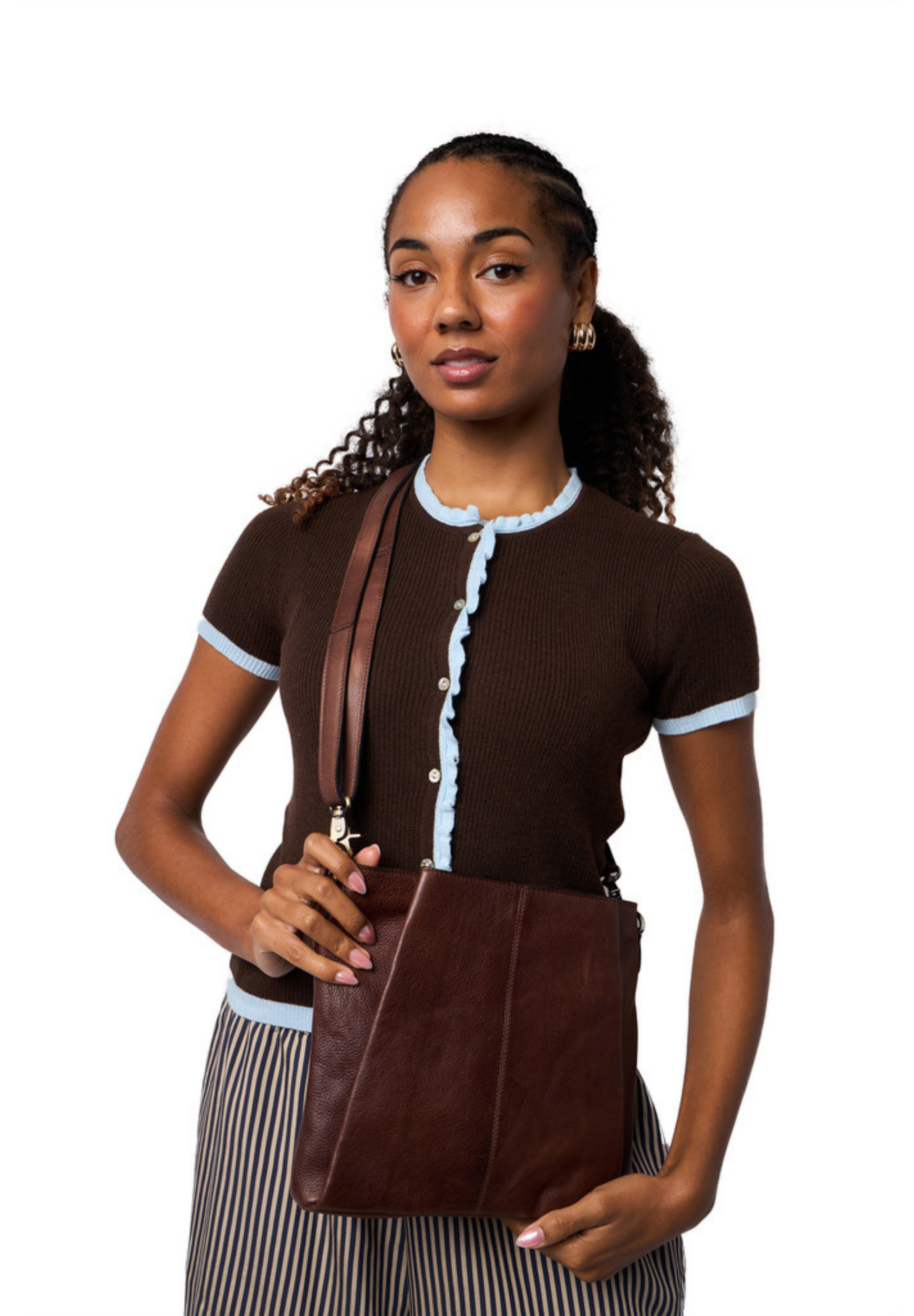 Nisa Medium er en elegant og praktisk veske med tidløst design. Den har en justerbar og avtakbar crossbody-stropp, som gjør den behagelig å bære. Vesken har et romslig hovedrom med glidelås som holder tingene dine trygt og organisert. I tillegg har den et ekstra rom foran som lukkes med knapp - en detalj som gir både funksjon og et stilrent uttrykk.