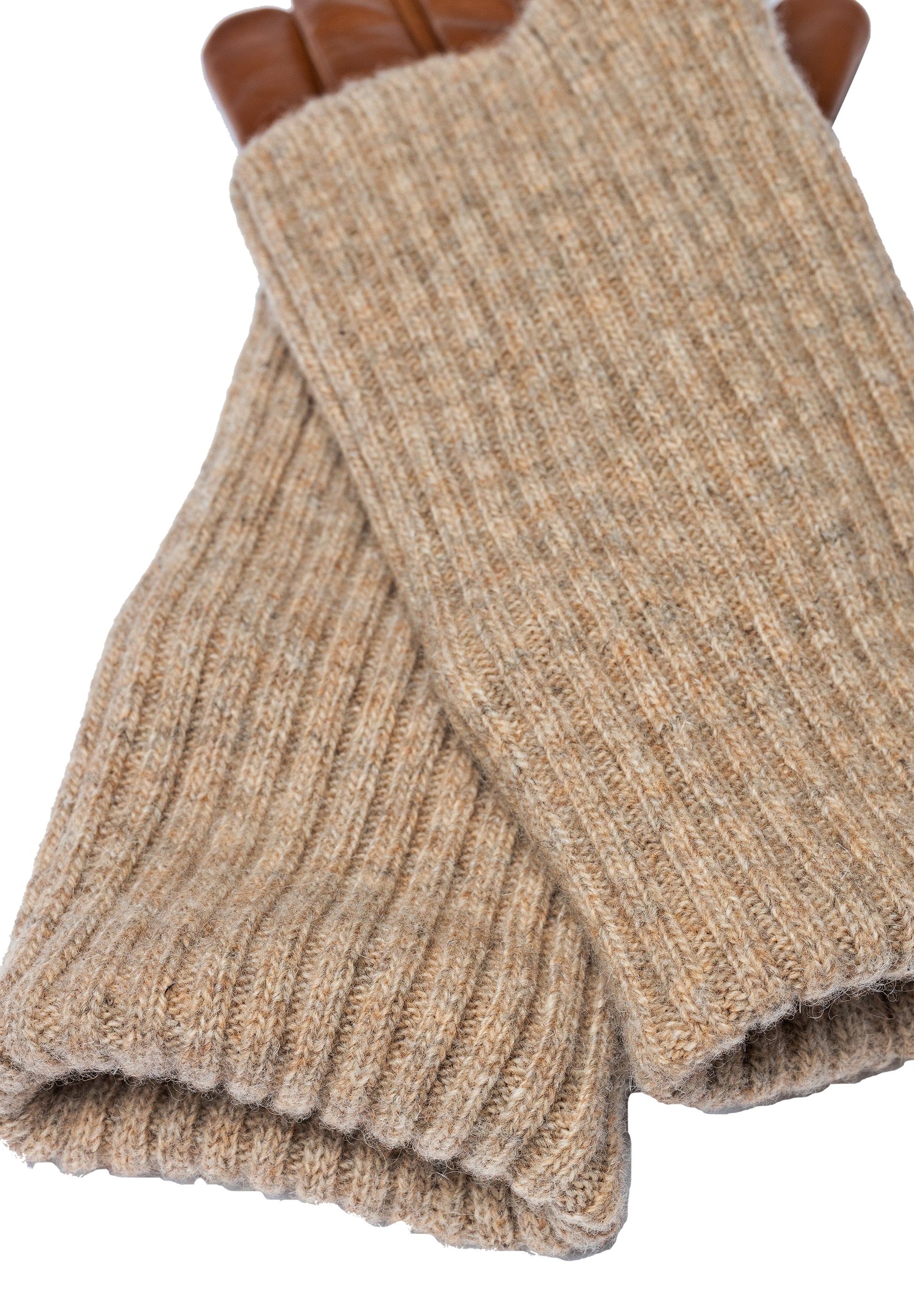 Klassiske hansker i mykt skinn med fleecefôr for ekstra varme og komfort. Ribbestrikken kan trekkes ned over tommelen og gir god varme rundt håndleddet. Hanskene har touch-funksjon på tommel og pekefinger, slik at du kan bruke smarttelefonen uten å ta dem av. Kombinasjonen av skinn og strikk gir et stilig og moderne preg.
