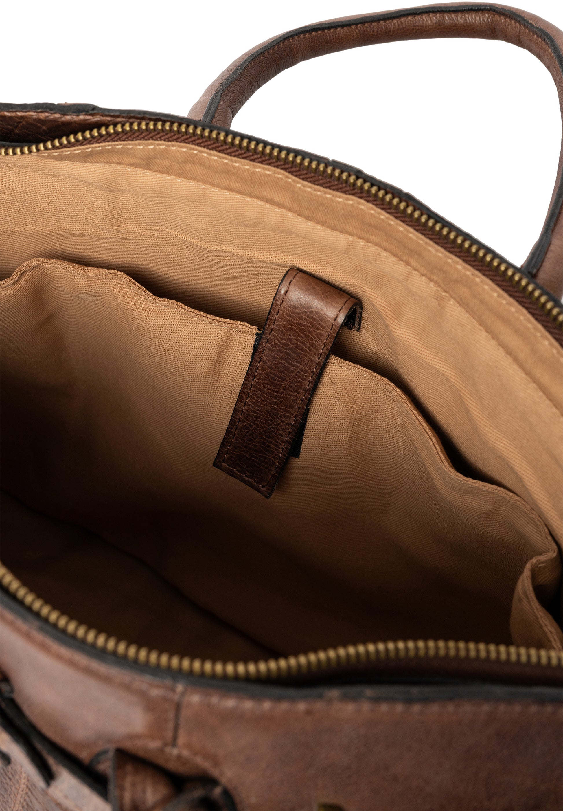Laget i RE:Designeds Urban kvalitet – et naturlig behandlet ku-skinn som bevarer det unike, originale mønsteret. En lett voks er påført for å fremheve det vintage preget i skinnet, som gjør det glatt og mykt, samtidig som det skaper en naturlig patina over tid.