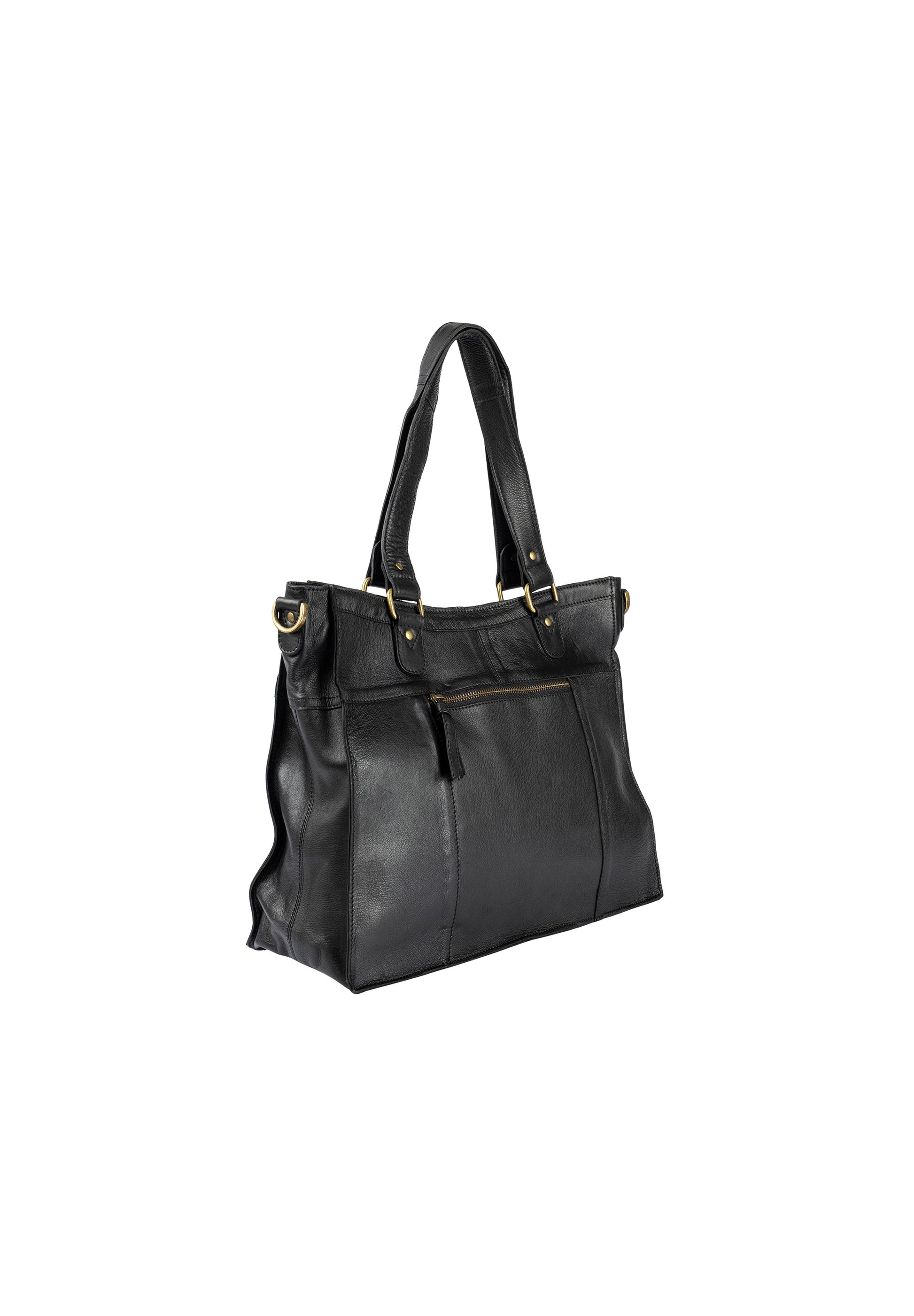 Tidløst designet stor skinnveske med glidelåslukking på toppen, skulderhåndtak og justerbar/avtagbar lang stropp. Skinnet får en vakker patina over tid som gir vesken unik karakter.
