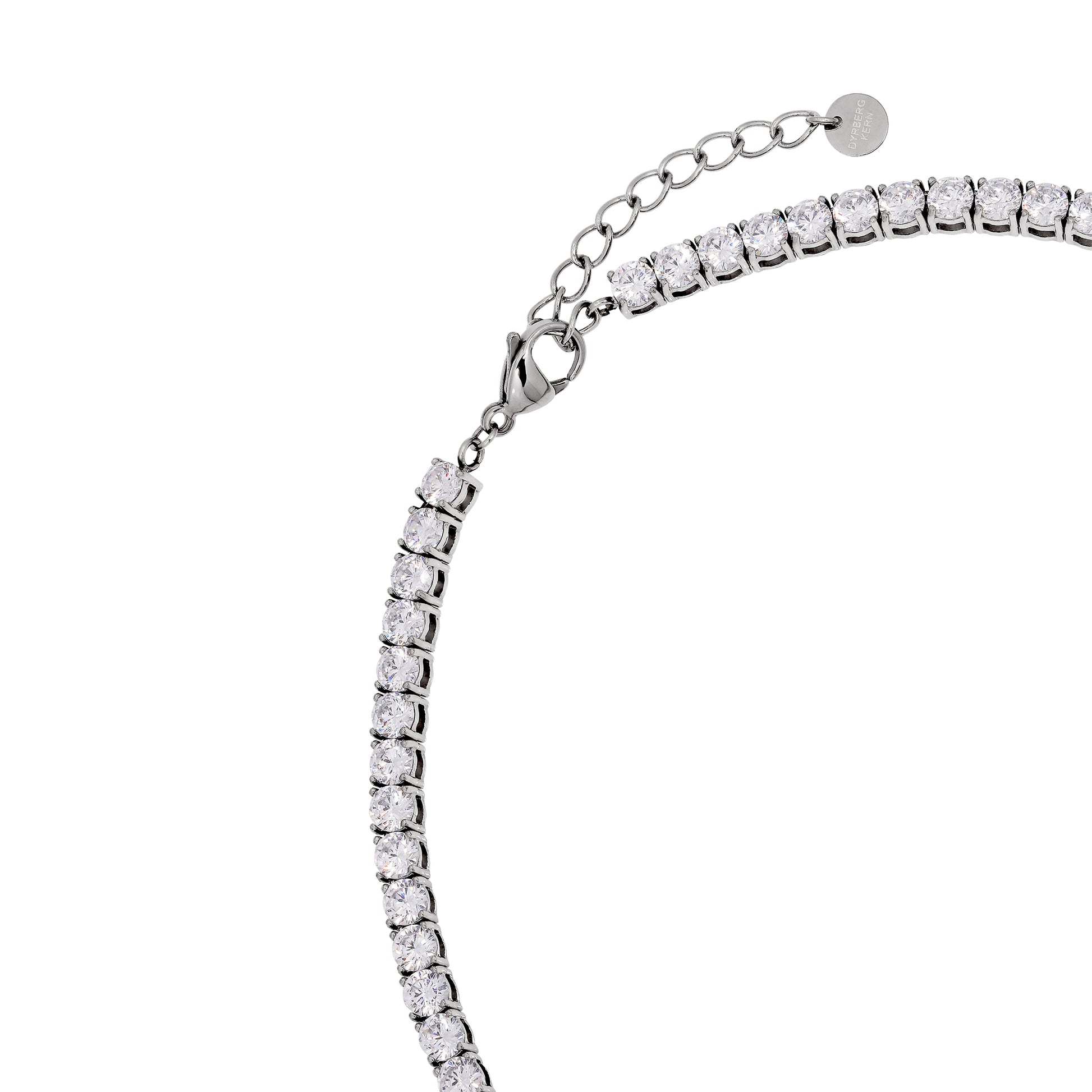 SNAKE er et elegant snake-kjede der hele lenken er dekket av hvite cubic zirconia-steiner. Hver stein er fasettslipt og 5 mm i diameter. Lengde 42 cm langt + 5 cm forlengelse. Sølvtonet finish.